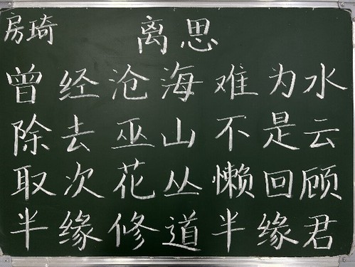 “道虽迩,不行不至;事虽小,不为不成。”这是房琦的座右铭。房琦回忆,第一次听闻师范生大赛是在大二的《教育统计学》课上,姜超老师展示了学姐们训练的钢笔字,看着一个个板正的楷体字,房琦心生羡慕。而大二的这一初体验就成为了她的参赛初心——成为像学长学姐们这般优秀的师范生!