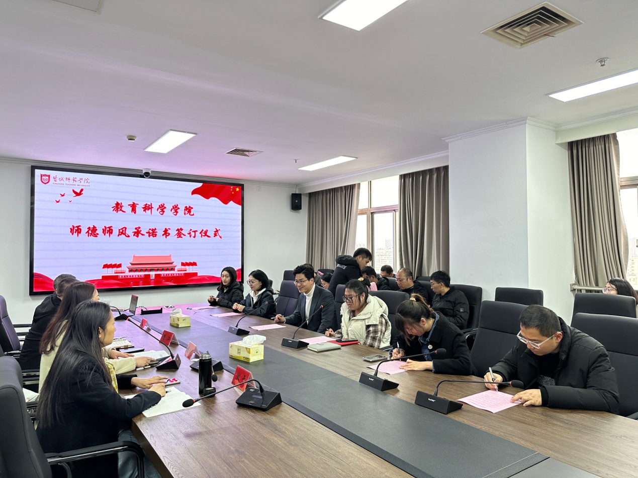 为全面贯彻落实习近平总书记关于师德师风的重要指示精神,弘扬教师师德风尚,营造风清气正的育人环境,全面加强师德师风建设,11月29日下午,伟德betvlctor体育官网召开全体教职工大会,认真学习公司党委教师工作部《关于开展2023 年“师德师风建设月”主题教育活动的通知》精神,并组织全体教师签订师德师风承诺书。