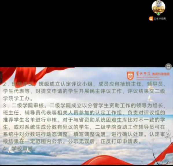 5月29日,同步开启线上宣讲会,公司三百多名经济困难员工参与活动。资助辅导员及员工干部通过腾讯会议平台,再次梳理资助政策体系,线上参与员工积极留言,员工干部进行实时回复,拓展政策传播广度,展现资助助力青春逐梦的力量,传递“受助思源、感恩奋进”正能量。